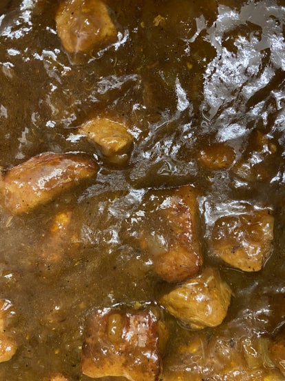 1 kg Schweinebraten in einer traumhaften Senfsoße mit vielen Kräutern und gekörntem Senf